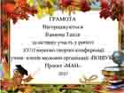 Вітаємо Шахову Валерію, ученицю 7-Б класу, з отриманням Диплому 2 премії!
