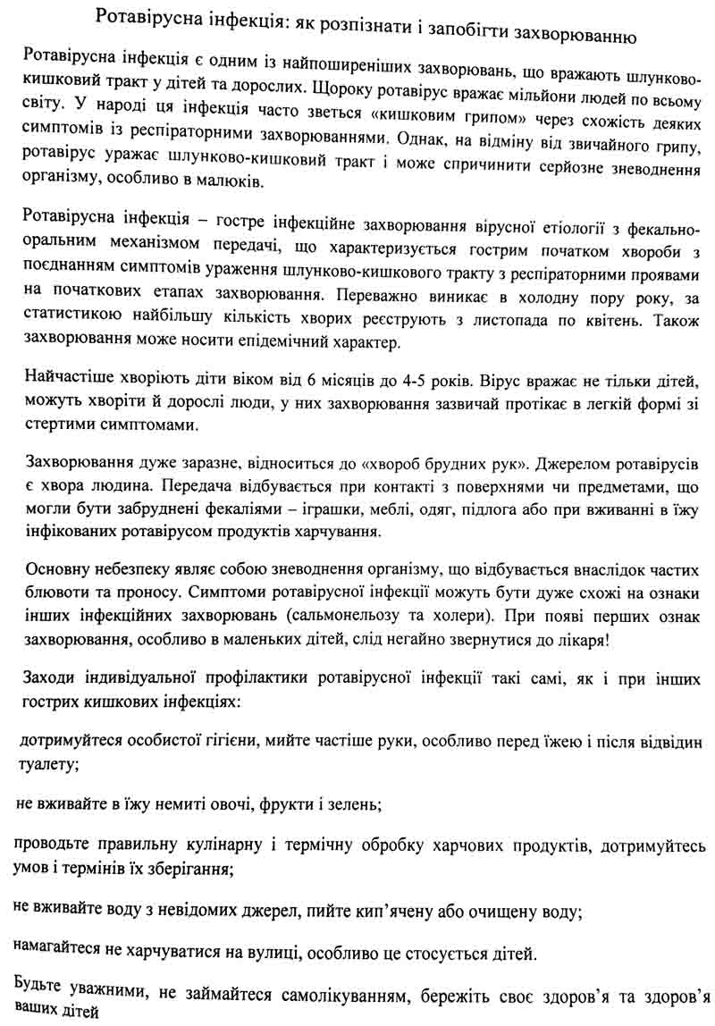 Лист щодо запобігання розповсюдженню ротавірусної інфекції